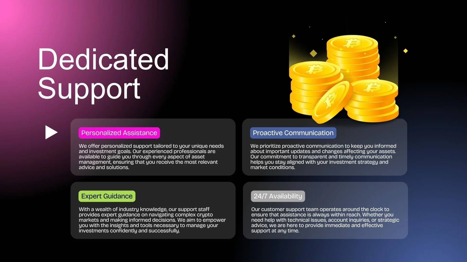Deliverables: Provided copywriting and design of a presentation deck outlining the company’s services, technology, and brand positioning within the emerging crypto finance landscape.